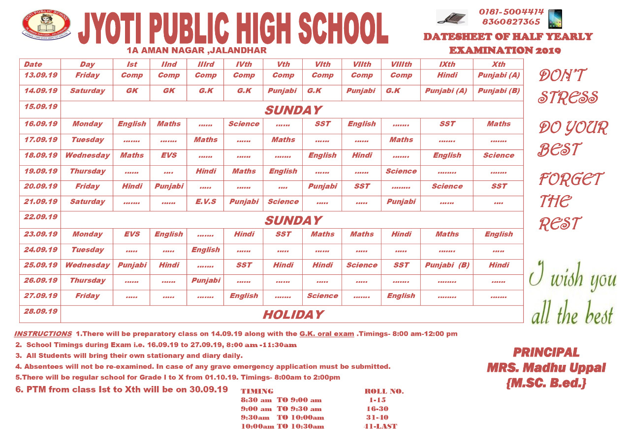 DATESHEET OF HALF YEARLY EXAM AVAILABLE ON WEBSITE ,KINDLY DOWNLOAD